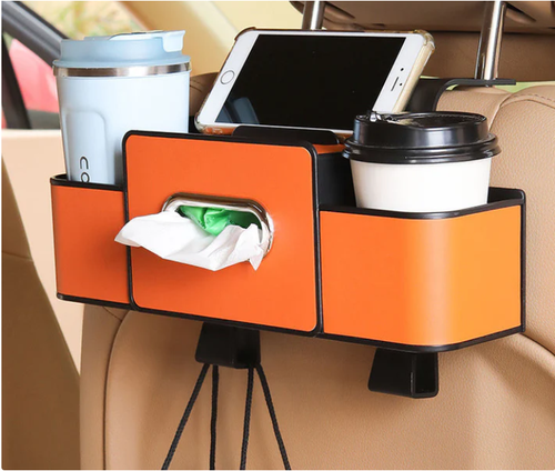 Multi-Functional Car Seat Back Storage Box with Hooks